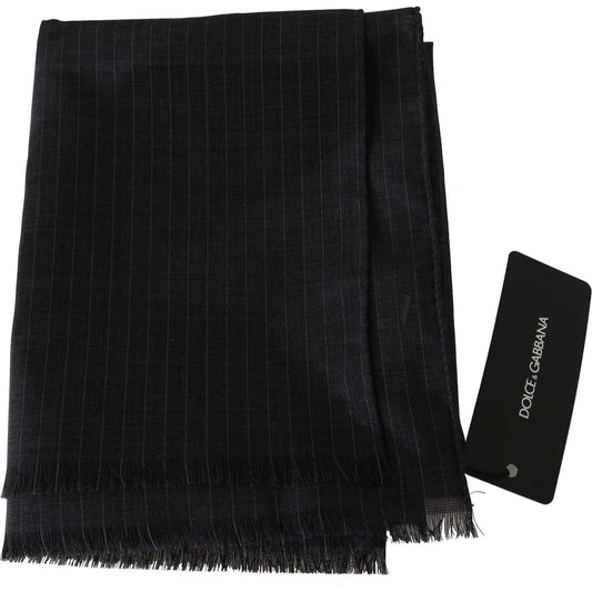 Dolce & Gabbana Dark Gray Virgin Wool Striped Pattern Wrap Scarf