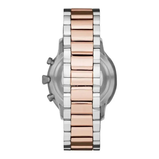 Emporio Armani Silver and Bronze Steel Chronograph Watch