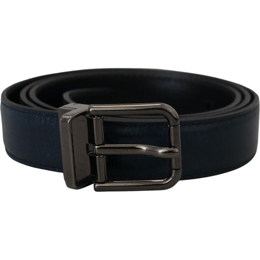 Dolce & Gabbana Blue Leather Silver Metal Buckle Vintage Belt