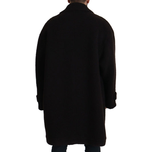 Dolce & Gabbana Black Wool Knit Double Breasted Coat Jacket