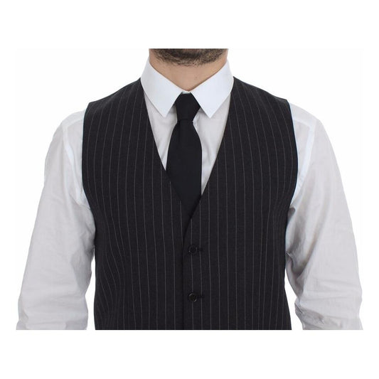 Dolce & Gabbana Gray Striped Wool Single Breasted Vest