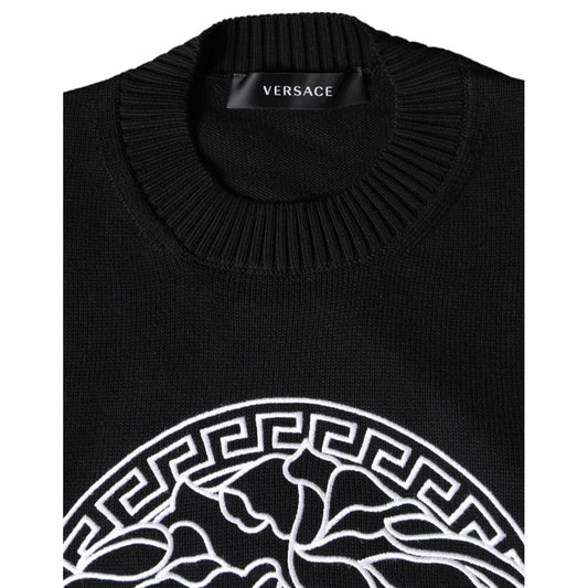 Versace Black Medusa Embroidery Crew Neck Pullover Sweater