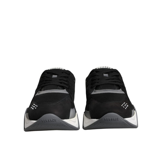 Versace Black Leather Neoprene Chunky Low Top Sneakers Squalo Shoes