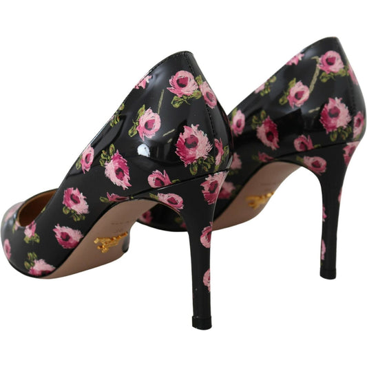 Prada Black Leather Floral Heels Stilettos Pumps