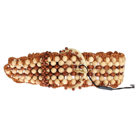 Dolce & Gabbana Brown Raffia Wood Beaded Wide Waist Belt