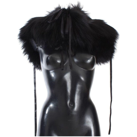 Dolce & Gabbana Black Fox Fur Shoulder Wrap Cover Collar Scarf