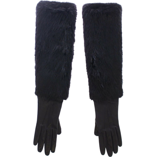 Dolce & Gabbana Black Beaver Fur Lambskin Leather Elbow Gloves