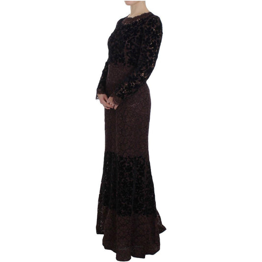 Dolce & Gabbana Black Floral Lace Long Bodycon Maxi Dress